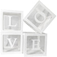 Set 4 Cutii pentru Baloane, Flippy, Model Scris Love, Tematica Iubire, Cuburi Decorative din Plastic, Accesorii pentru Petrecere, 30 x30 cm, Transparente Contur Alb