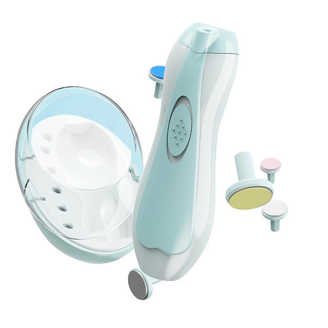 Pila Electrica Unghii pentru Bebelusi, Flippy, 6 Piese, 15 x 4.5 x 3 cm, Silentios, 0-3 Ani, 4 Trepte de Viteza, Albastru