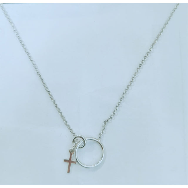 Colier Reglabil din Argint 925 cu Cerc si Cruce, 56 cm