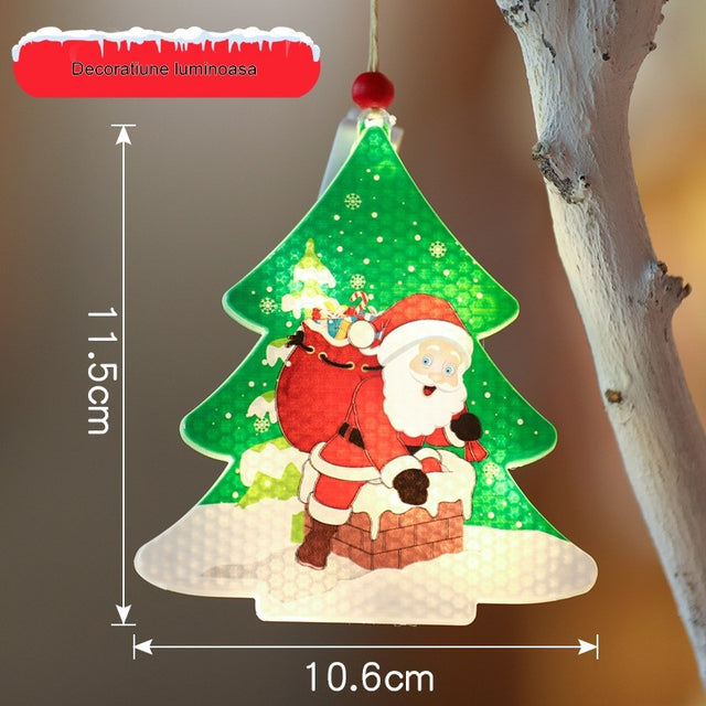 Decoratiune de Craciun Luminoasa in forma de Brad, 11.5 x 10.6 cm, Mos Craciun langa brad, cu agatatoare, Alb Cald, Flippy