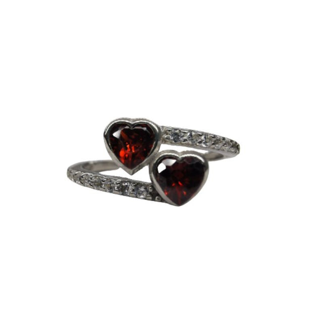 Inel din Argint 925 Doua Inimi Rubinii