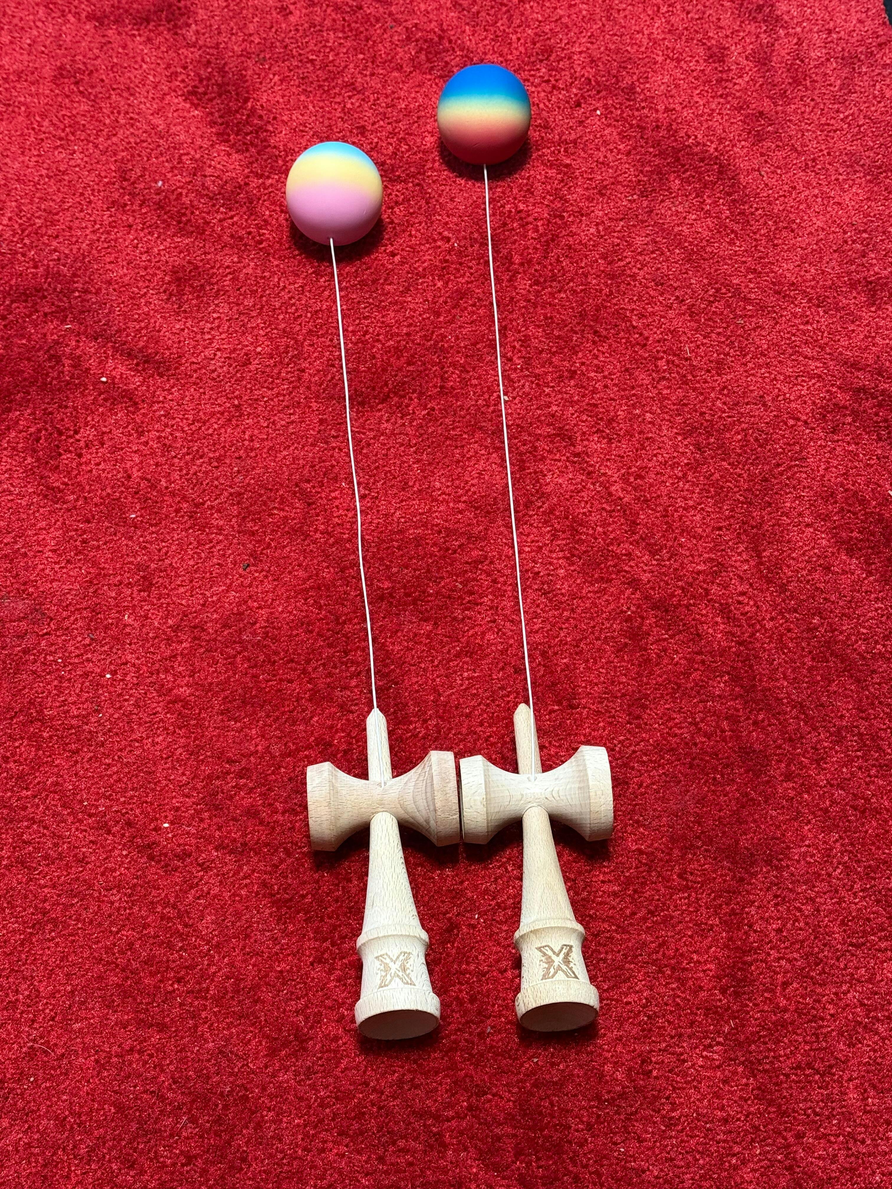 Kendama X Originala, Profesionala, Vivimall, din Lemn, Rubber Grip, 18 cm, Gradient Violet/Albastru