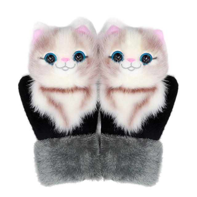 Manusi de Plus pentru Copii, Flippy, de Iarna, Groase, Moi, Calduroase, Model Animat Pisica Crem