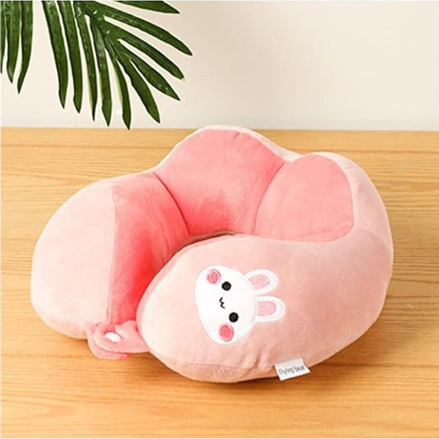 Perna de Calatorie, Flippy, Pentru Gat si Cap, Umplutura din Bumbac, 28x28x10 cm, cu Model Brodat Iepure, Roz