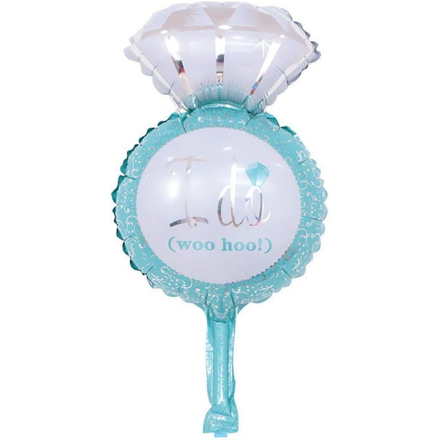 Balon din Folie Metalizata, Mini Figurine Nunta, Model Inel de Logodna, Tematica Cerere in Casatorie, 46x23 cm, Ambalaj Individual, Pai Inclus, Umflare cu Aer sau Heliu, Albastru