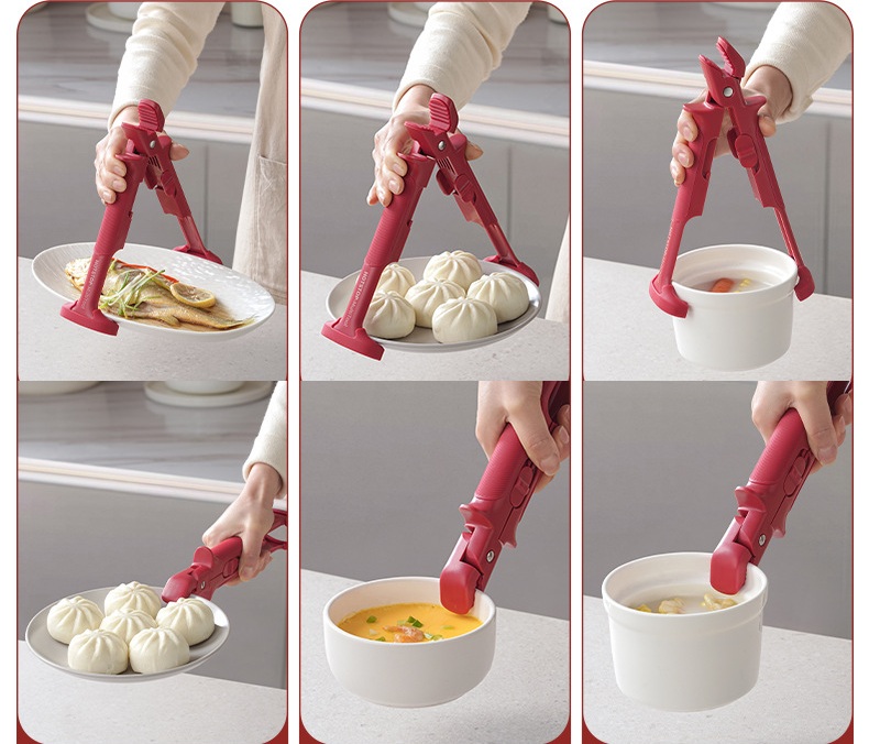 Echipat cu o clemă dublă (superioară + inferioară) ce permite prinderea stabilă a farfuriilor, bolurilor, tăvilor și vaselor pentru abur. Ideal pentru cuptor, cuptor cu microunde, air fryer sau aragaz.
