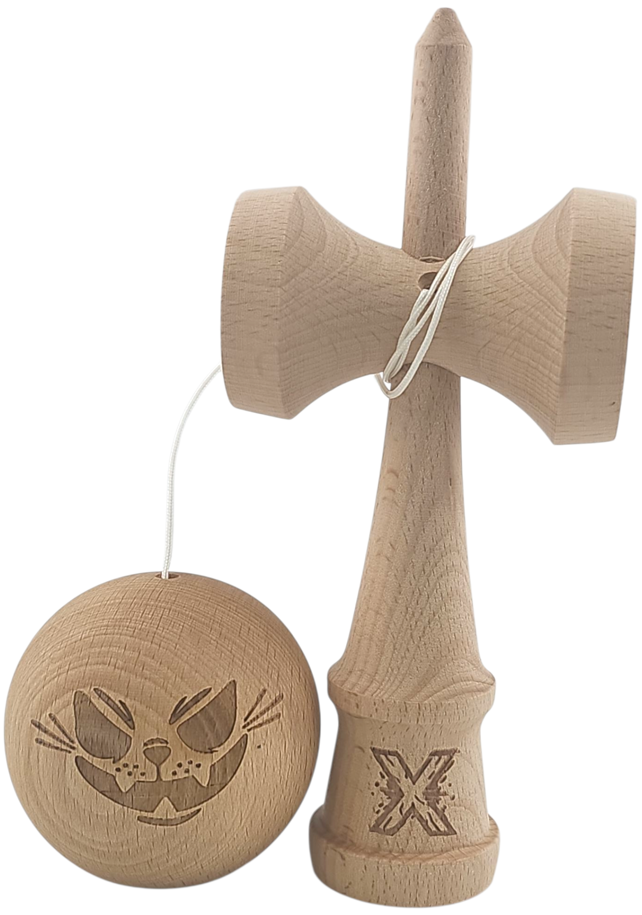 Kendama X Originala, Profesionala, Vivimall, din Lemn, 18 cm, Special, Crazy Cat, Lemn