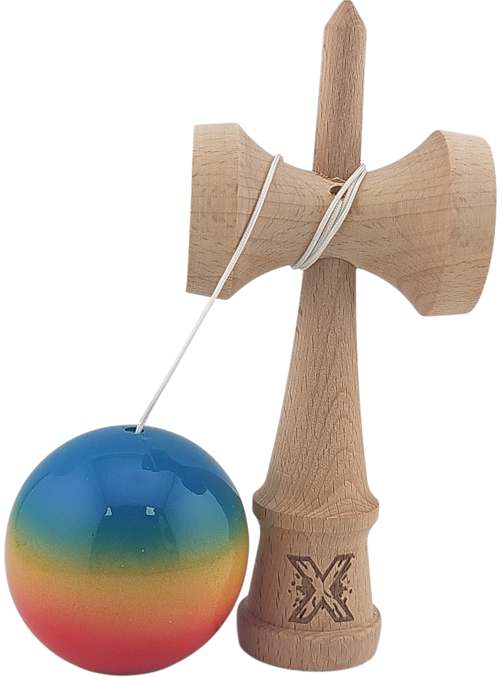 Kendama X Originala, Profesionala, Vivimall, Super Sticky din Lemn, 18 cm, Gradient Rosu/Galben/Albastru