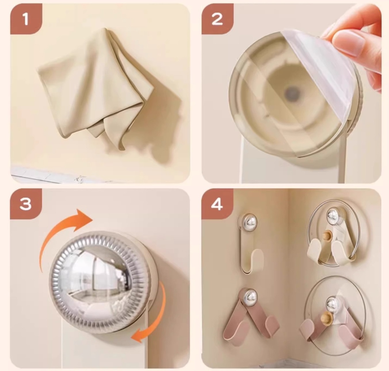 Se fixează simplu prin lipire, potrivit pentru suprafețe precum faianță, sticlă sau blaturi lucioase.