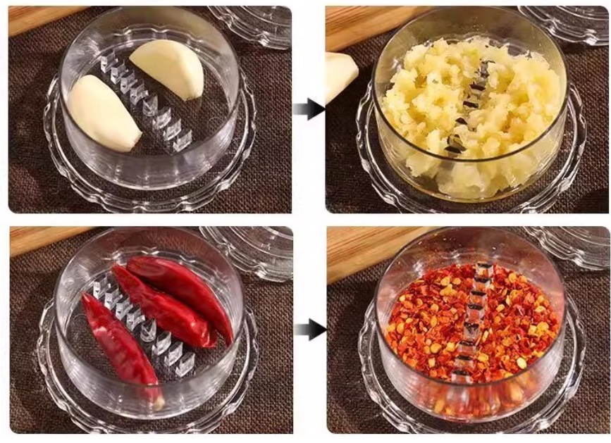 Zdrobitor de Usturoi Flippy, Multifuncțional, din Plastic, Prin Răsucire, Transparent