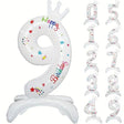 Balon din Folie Metalizata, Flippy, Figurina Cifra, Model 9 cu Happy Birthday Scris, Tema Aniversare 81 cm, Ambalaj Individual, Pai Inclus, Umflare cu Aer sau Heliu, Alb