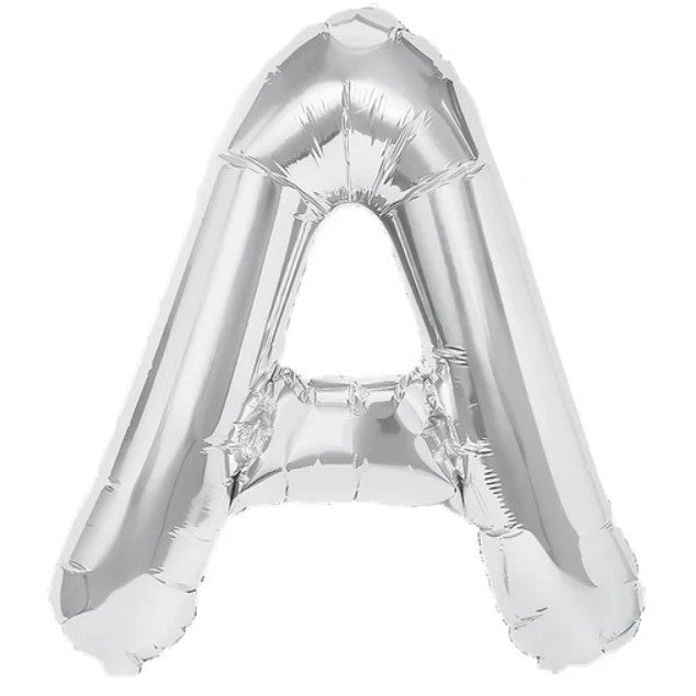 Balon Folie Metalizata Litera A, Flippy, 80 cm, Umflati cu Heliu sau Aer, Ambalaj Individual, Pai inclus, Argintiu