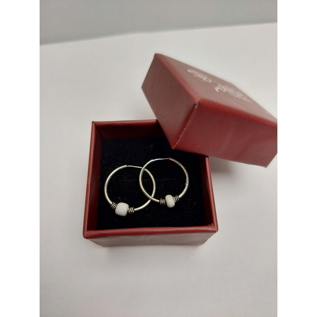 Cercei Argint 925 Creole 15 mm cu Piatra Alba, Jolie Silver, 0.9g, 2 cm x 1.3 cm