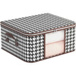 Cutie de Depozitare Pliabila, Flippy, 60x40x30 cm, 75 L, Fereastra Frontala, cu Fermoar Bidirectional, Suport Baza Stabil, Imprimeu in Carouri, Alb/Negru