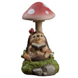 Decoratiune pentru Gradina, Lumini LED cu Incarcare solara, 19.5 x 9.5 x 9.5 cm, Model Ciuperca cu Arici care Citeste, Maro