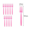 Set de 10 furculițe de unică folosință, în culorile roz și negru, ideale pentru petreceri, picnicuri sau mese festive. Realizate din plastic PE rezistent, ușor de folosit și sigure pentru copii și adulți.